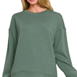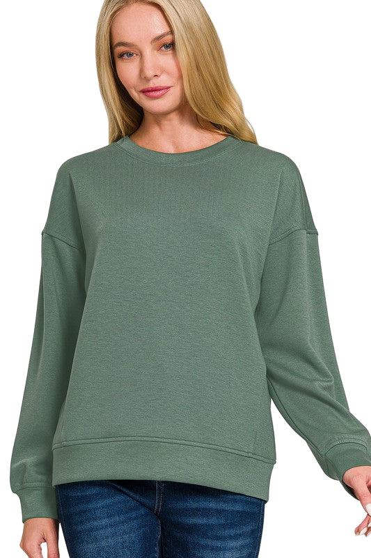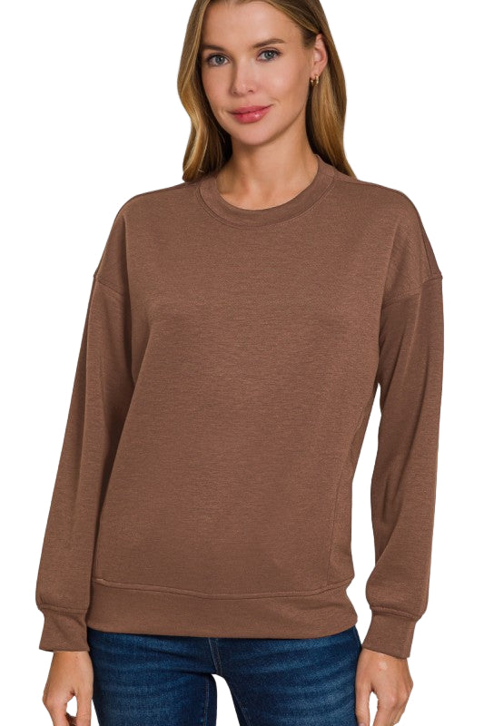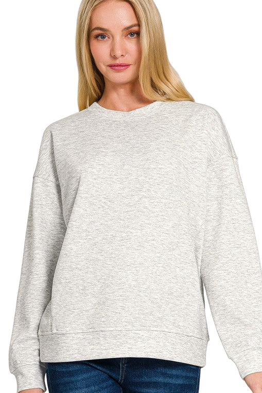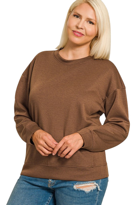 Wrap yourself in cloud-like comfort with our Scuba Round Neck Sweatshirt. Crafted from buttery-soft fabric that feels like a cozy hug, this versatile layer keeps you feeling relaxed whether you're lounging at home or running errands around town. The classic round neckline pairs effortlessly with your favorite jeans or joggers, making it a go-to piece for any casual day. Perfect for layering or wearing solo, this sweatshirt is your new best friend for laid-back style.
