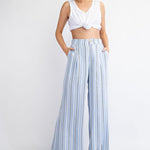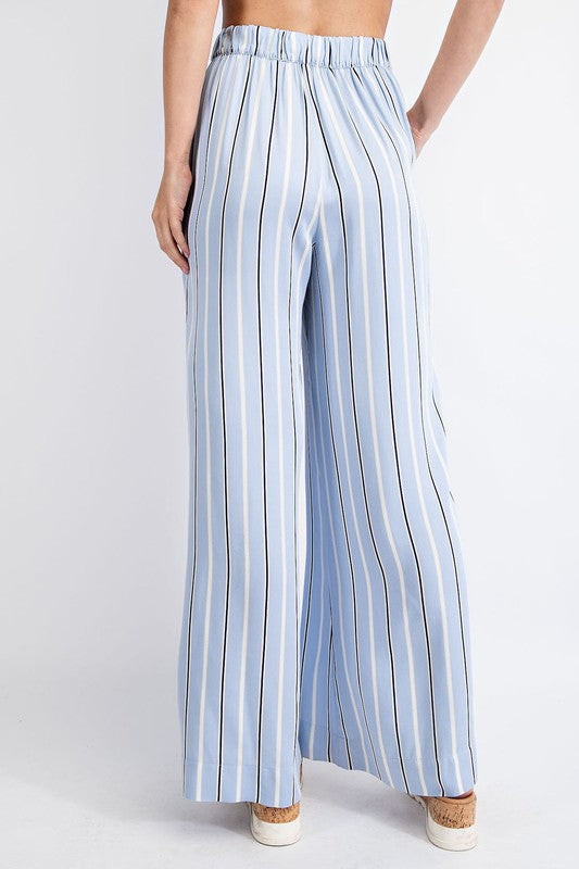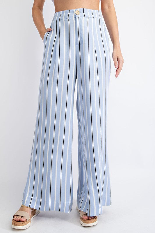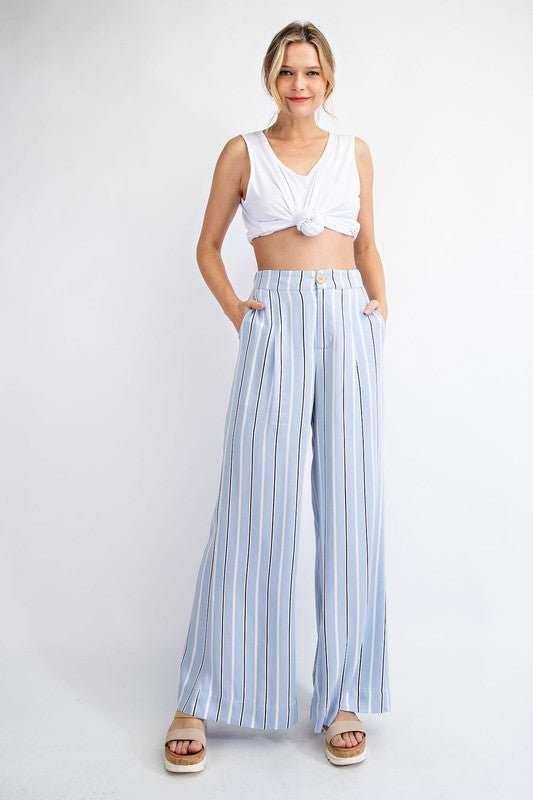 Imagine a fresh breeze walking along the lake or beach in these cute striped rayon twill pants with high waist and zipper front. Side pockets.