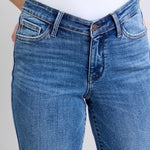 Step into effortless style with the Judy Blue High Waist Straight Fit jeans. Featuring a vintage wash and a playful V-front design, these jeans hug your curves with comfortable stretch while showcasing a flattering high waist. Perfect for adding a touch of retro flair to your everyday look.