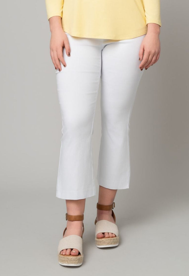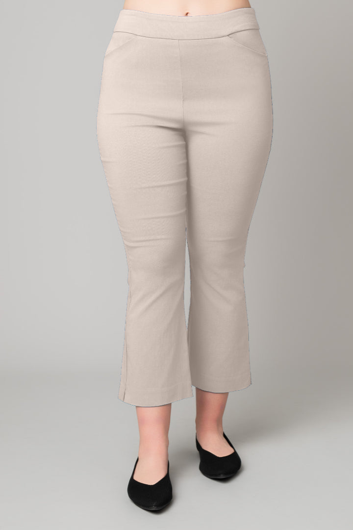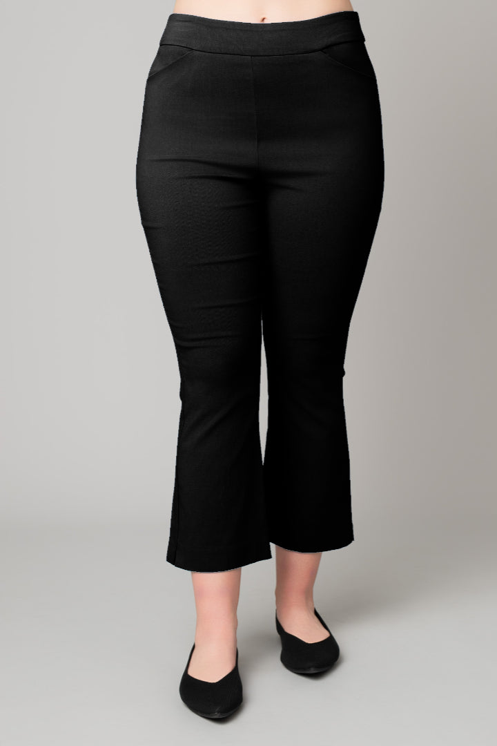 Elevate your style with the Millennium Cropped Flare Pant. These high rise pants feature a pull-on elastic waistband and front pockets for convenience. The cropped flare cut adds a touch of trendiness, while the hem vents provide extra movement. Available in basic colors, these pants are a versatile addition to any wardrobe.