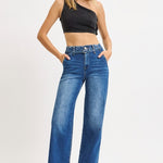 Step into style with these High Rise Wide Leg belted jeans in a deep, rich shade. Featuring a 10-1/2" rise and a 33" inseam for size 3/26, they bring a flattering fit and flowy vibe. Our model shows off a size 1, proving these jeans are as fun to wear as they look!