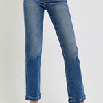 Step into effortless cool with the Risen Mid Rise Straight Jeans. Crafted in a versatile darker mid-wash denim, these jeans offer a flattering mid-rise fit and a straight leg silhouette that moves with you. Perfect for day-to-night adventures, they blend comfort and style with a playful twist on your wardrobe essentials.