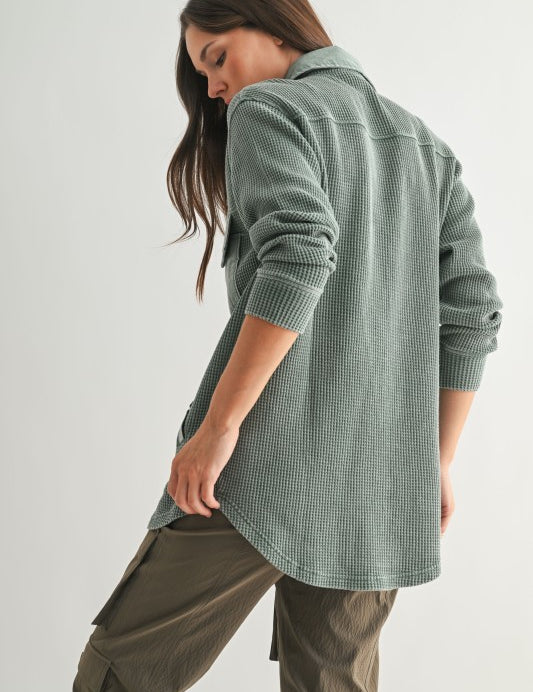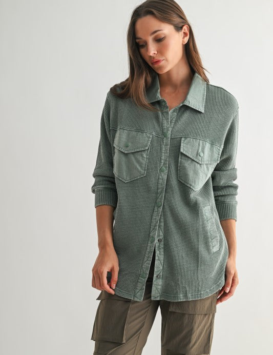 Waffle Knit Button Down Shirt