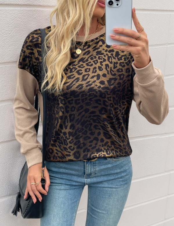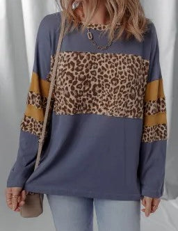 Colorblock Patchwork Leopard Top