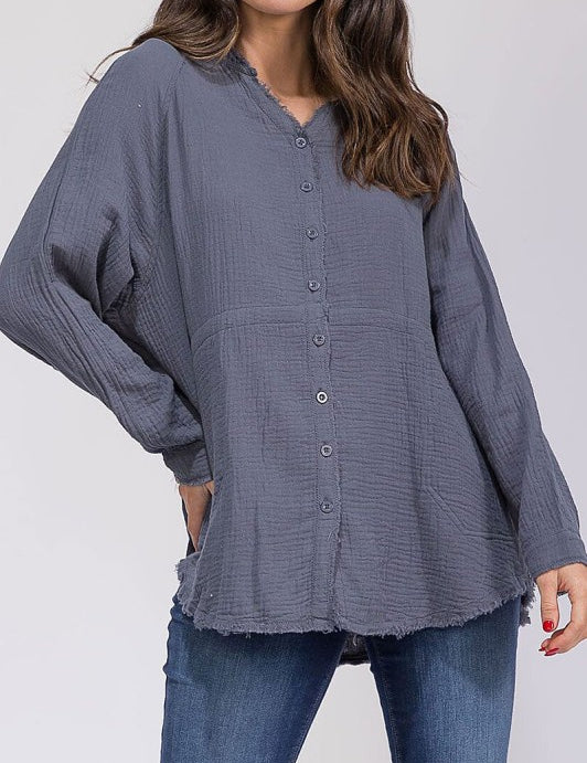 Waffle Weave Tunic With Frayed Details