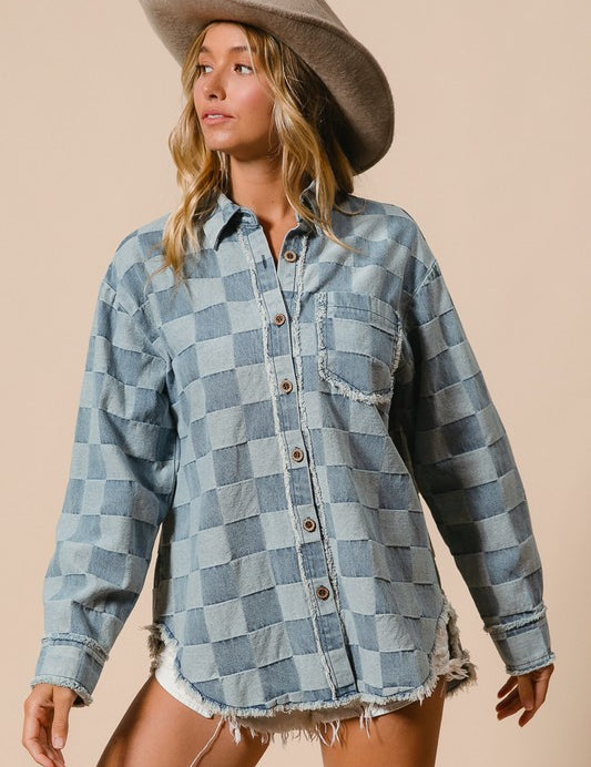 Checkered Denim Shirt With Patch Pocket