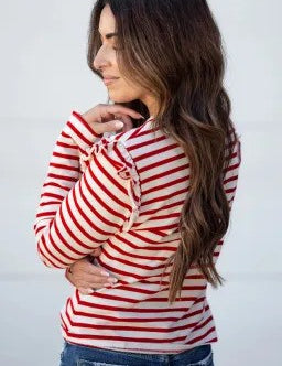 Striped Ruffle Shoulder Top