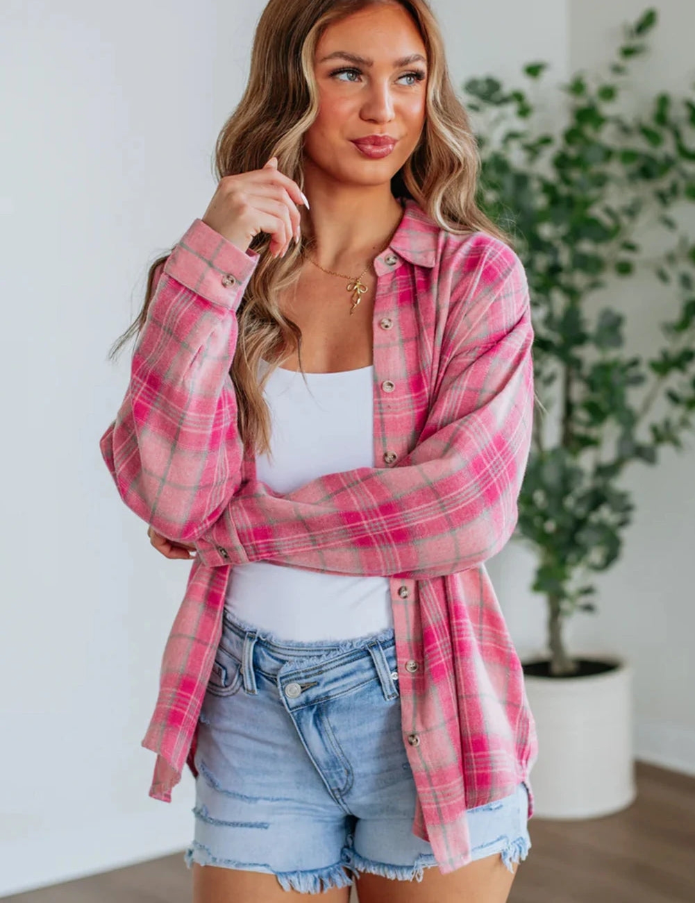 Pink Plaid Long Sleeve Shirt