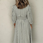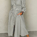 Meet your new go-to dress—a striped stunner that does it all. The high-waisted cinch flatters your figure while the full front zipper means zero wrestling with fabric. Black stripes keep things classic and cool, and yes, there are actual pockets because we know you appreciate the little things. Throw it on for brunch, the office, or anywhere in between. This dress gets it.