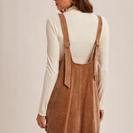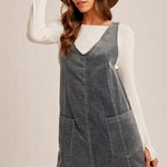 Step into cozy charm with this taupe mini corduroy pinafore overall dress. Soft snow wash fabric gives it a lived-in feel, while convenient pockets add a practical touch. Its playful silhouette makes it the perfect trendy piece to layer or wear solo for fun, casual style days.
