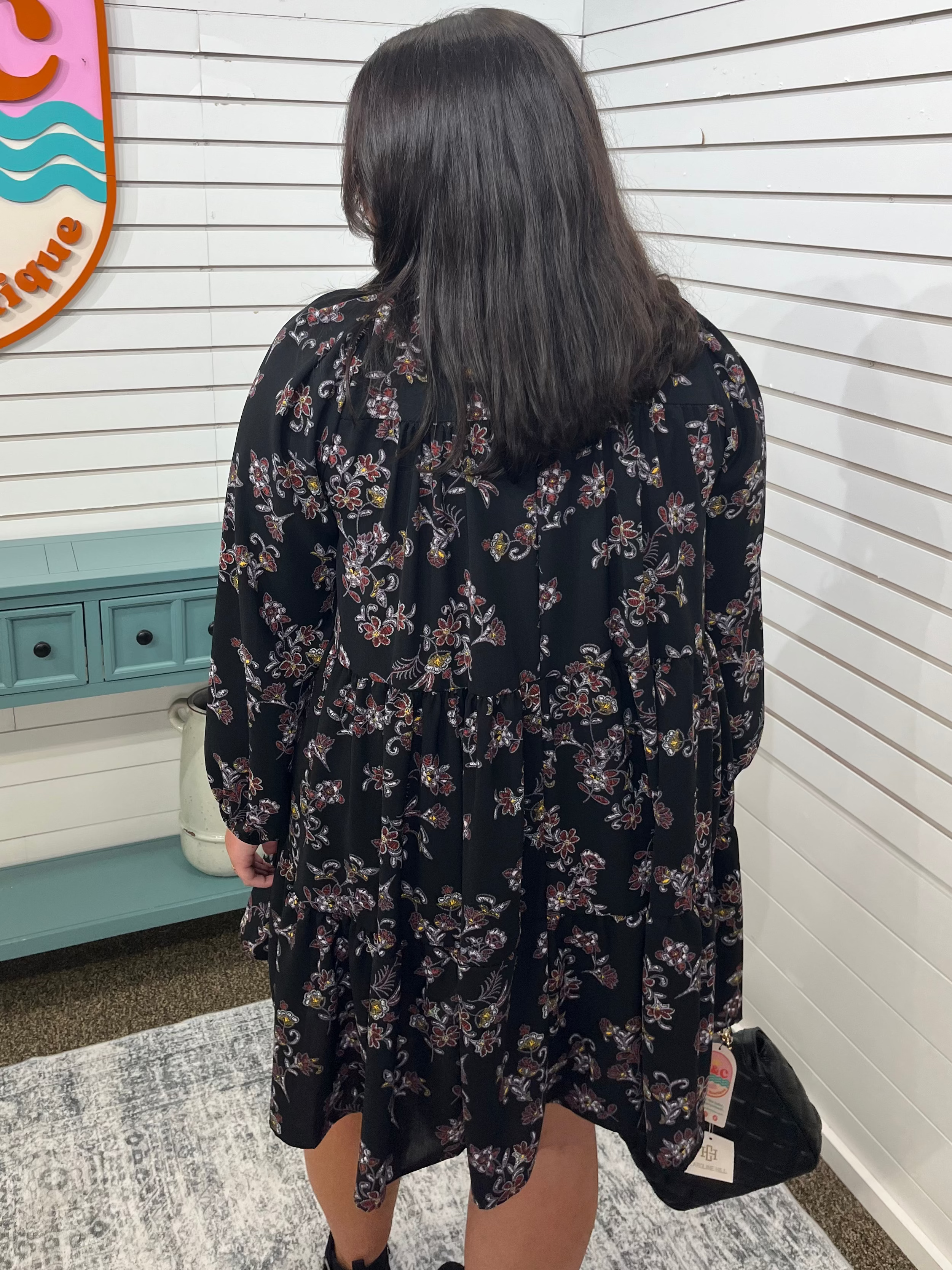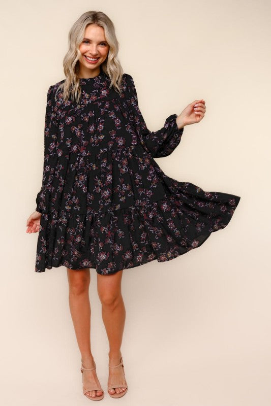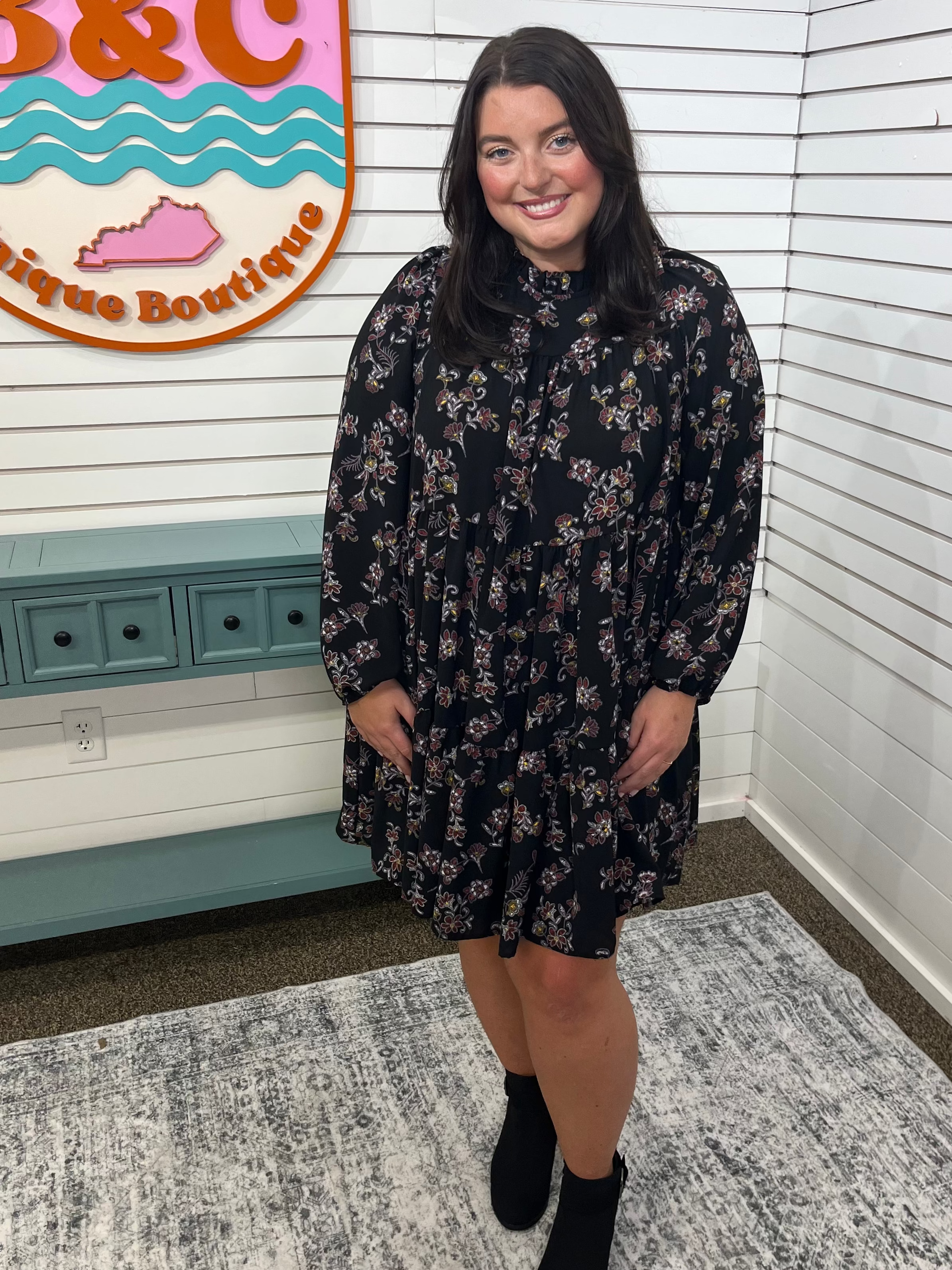 The Fannie Is Beautiful in Floral dress brings playful charm with its frilled neck and puff sleeves. Its flowy, tiered skirt with bright floral print and handy side pockets make it perfect for twirling through sunny days in style.