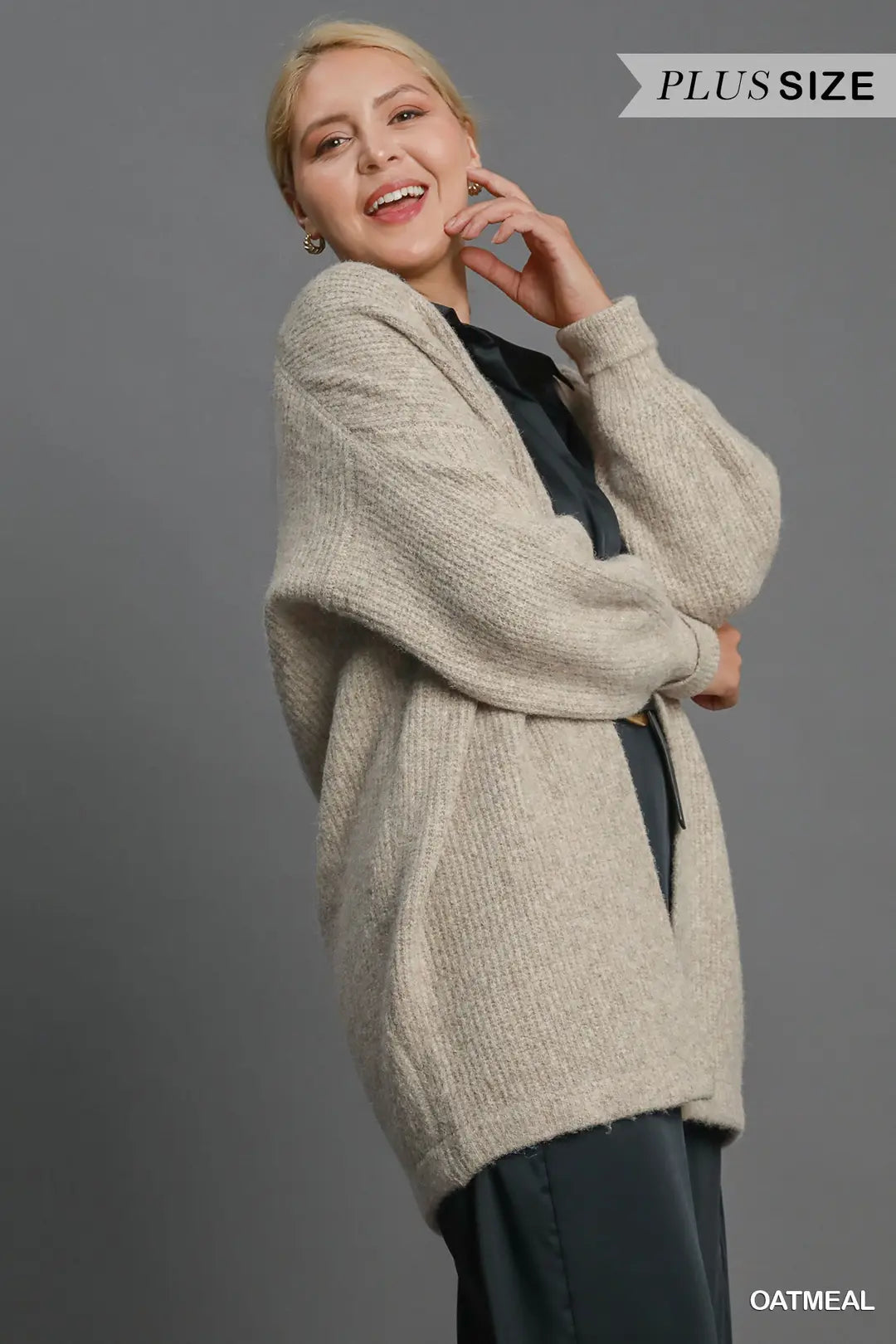 Wrap yourself in cozy charm with this oatmeal-colored wool blend open front cardigan. Its soft texture keeps you warm without the bulk of lining, perfect for layering on those unpredictable days. Effortlessly chic and comfy, it’s your new go-to for adding a snug touch to any outfit!