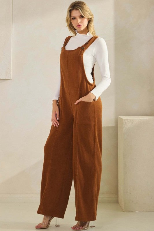 Embrace cozy vibes with these wide-leg corduroy overalls in a warm copper hue. The ribbed fabric and relaxed fit ensure all-day comfort, while adjustable shoulder straps let you find your perfect fit. Practical patch pockets add a fun, functional touch—perfect for stashing essentials or showing off your style with a playful flair.