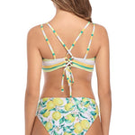This playful two-piece set flaunts a unique V-neck with spaghetti straps that tie at the back, complete with a removable padded bra for extra comfort. The mid-rise bikini bottoms are fully lined and offer just the right amount of coverage for your sunny adventures.