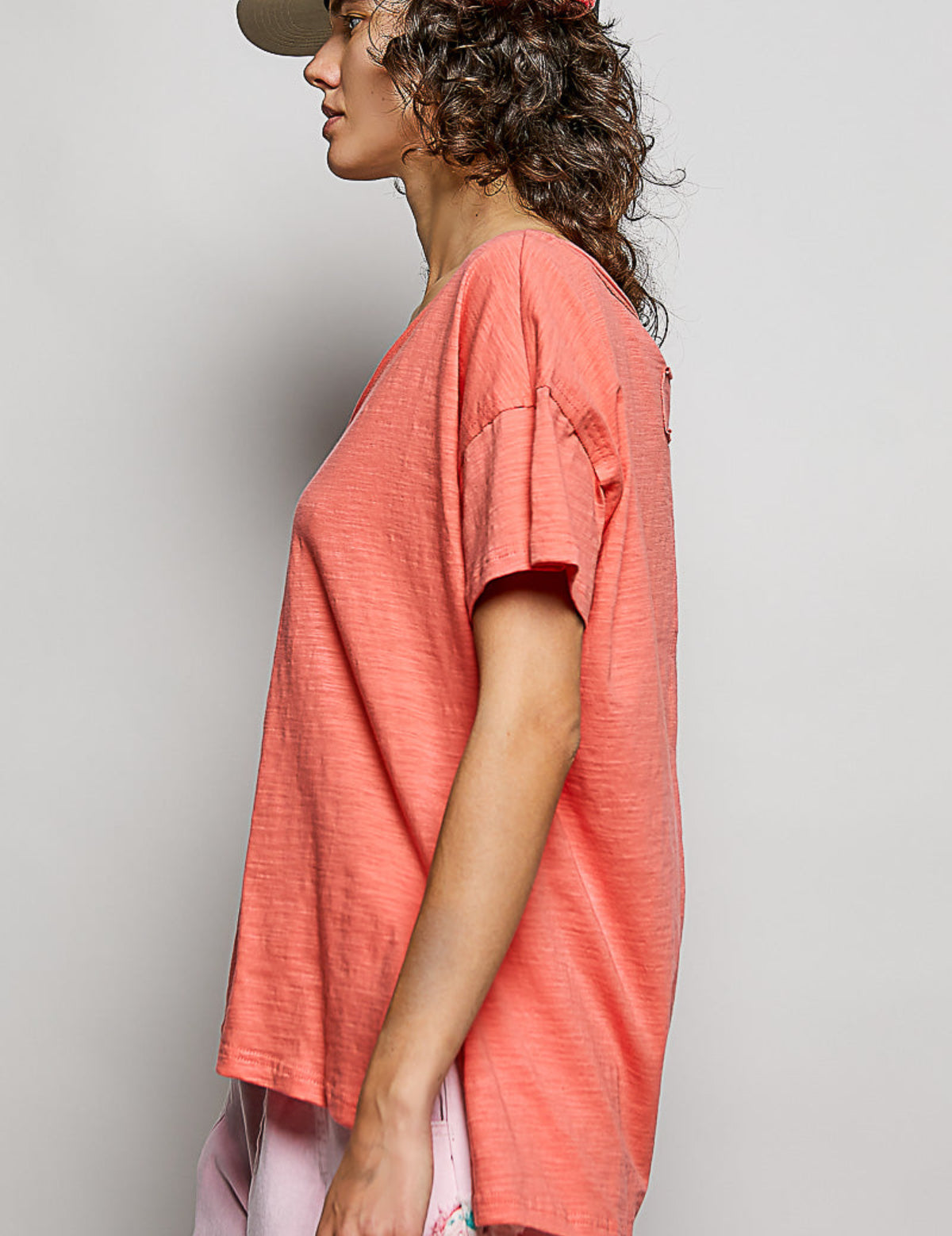 V Neck Basic Tee with Hi Low Hem