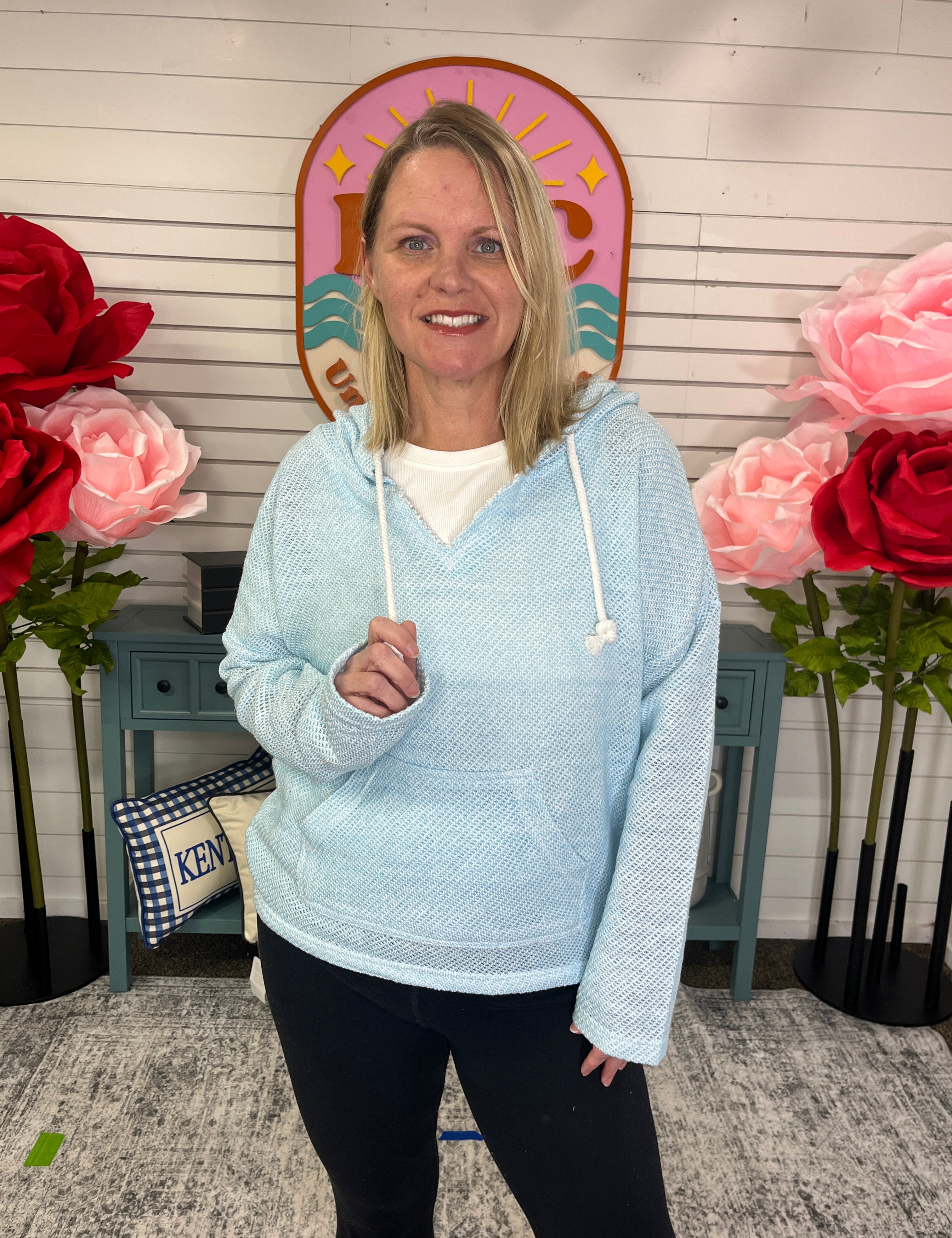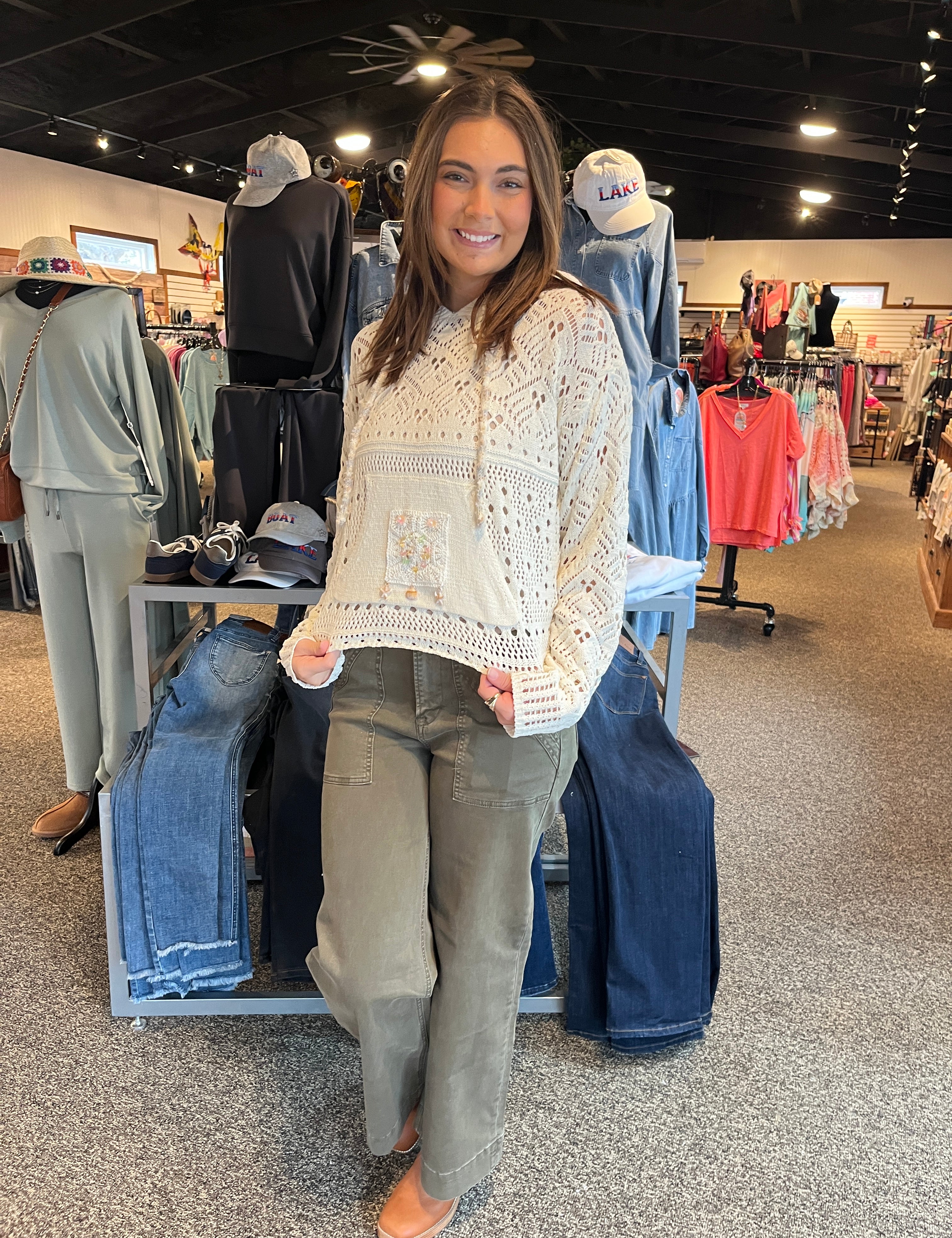Chenille Hooded Top with Crochet