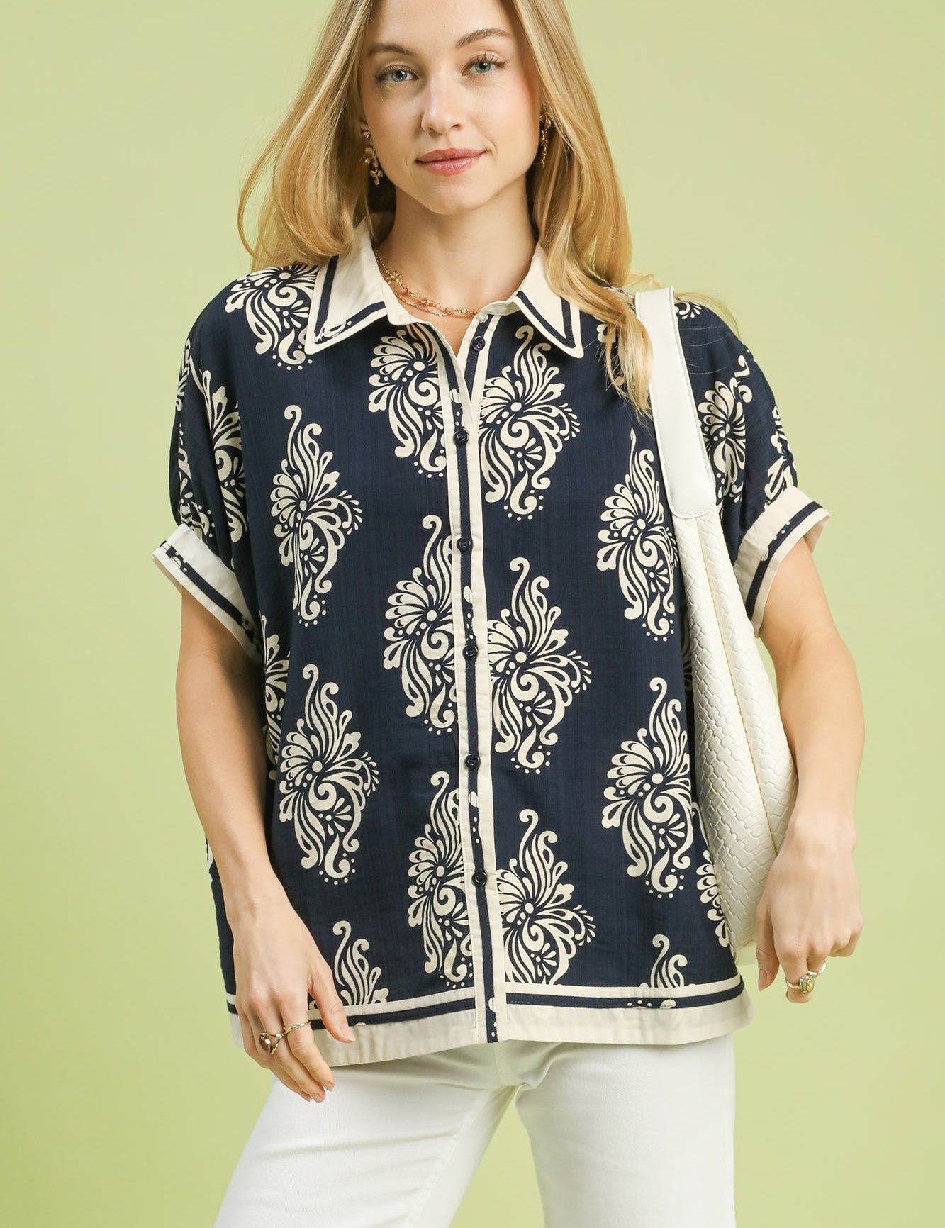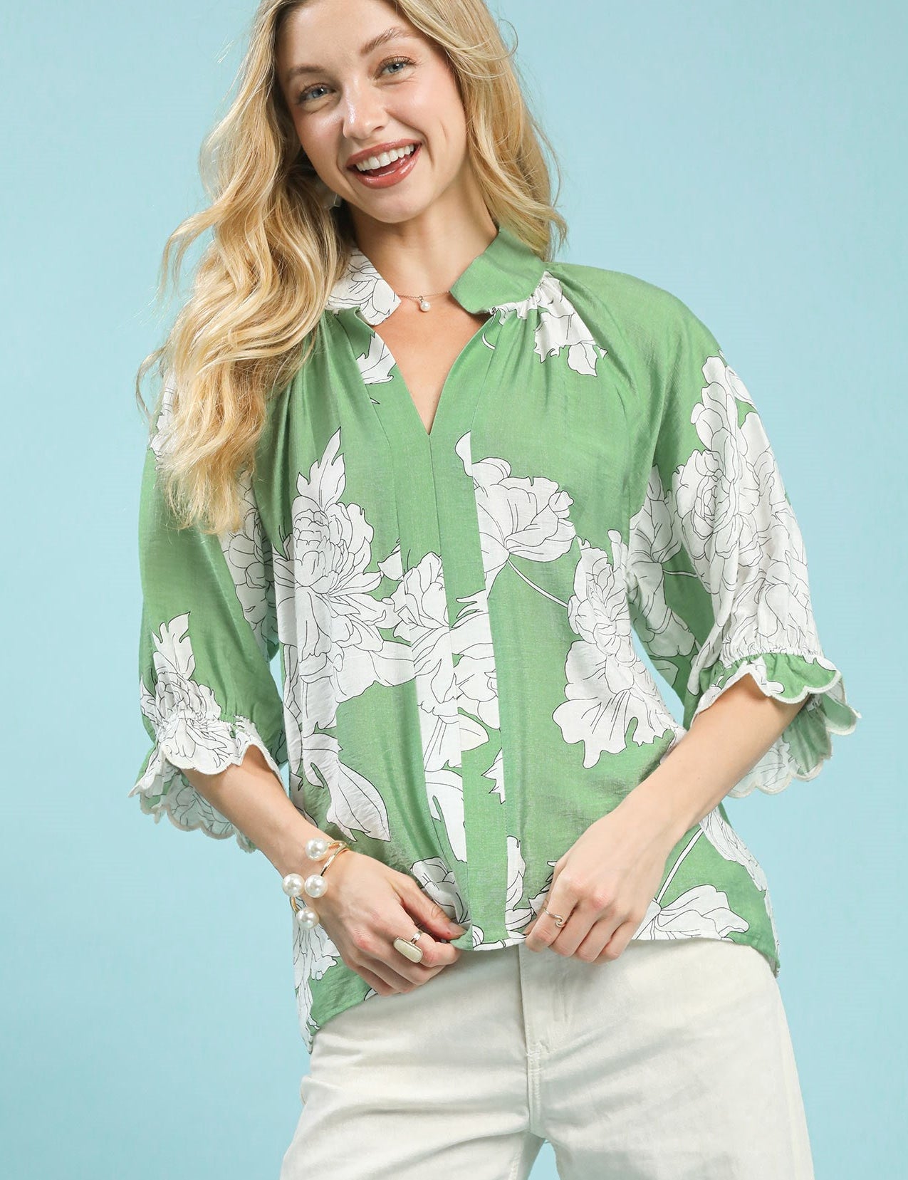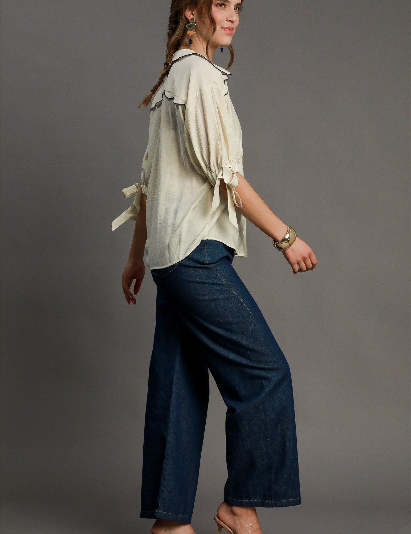 Scallop Collar Button Down Blouse