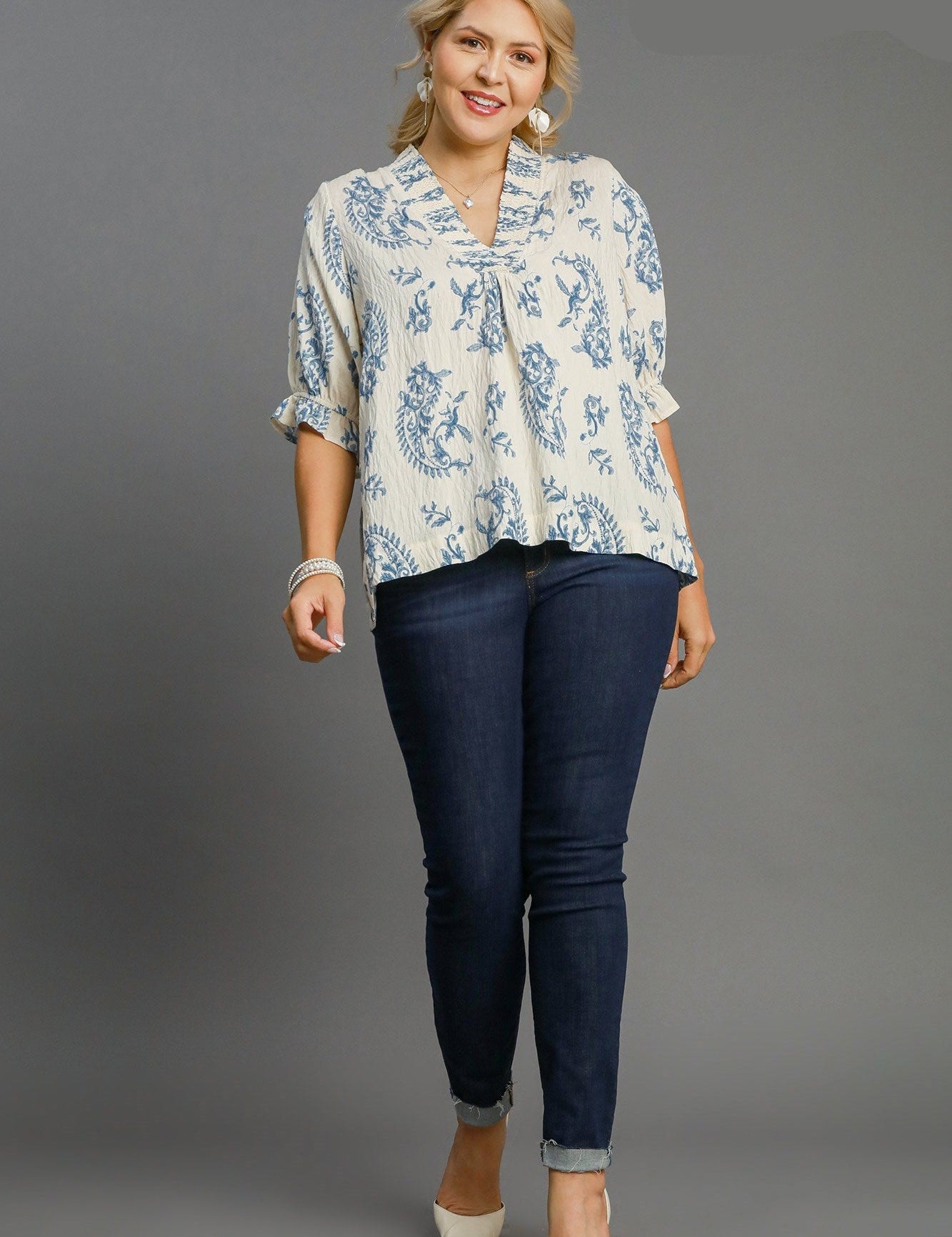 Paisley Print V Neck Blouse