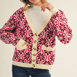 This Boho Floral Sweater Cardigan brings playful vibes with its bright floral print on a cozy deep V button-down design. The contrasting trim adds a fun twist, while pockets keep your essentials close, making it your go-to for effortless, cheerful style.