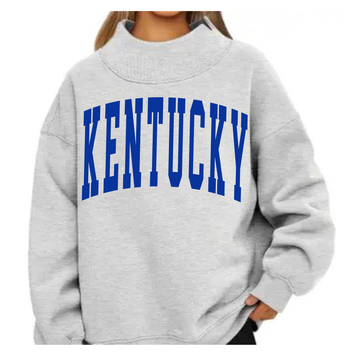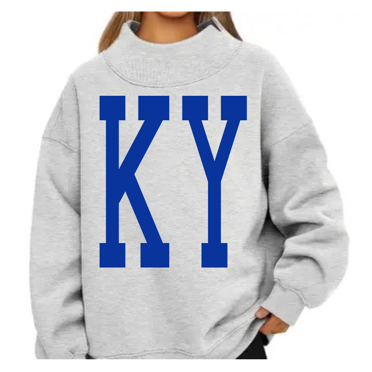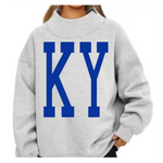 Show your state pride in style with the KY Inside Out Sweatshirt—a cozy mock neck sweatshirt featuring "Kentucky" spelled out boldly on one side and a casual "KY" on the other. The slit neck detail adds a playful twist to this comfortable favorite, perfect for layering or wearing on its own. Celebrate your love for Kentucky with a sweatshirt that’s as fun as it is warm!
