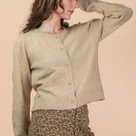 Stay cozy and stylish with the Oatmeal Crop Cardigan, your new favorite layer for work or weekend fun. Its button-down front and cropped fit add a flirty twist to a classic look, while the warm oatmeal hue pairs effortlessly with anything. Whether you're heading to a meeting or meeting friends, this cardigan is the perfect mix of comfy and cute.