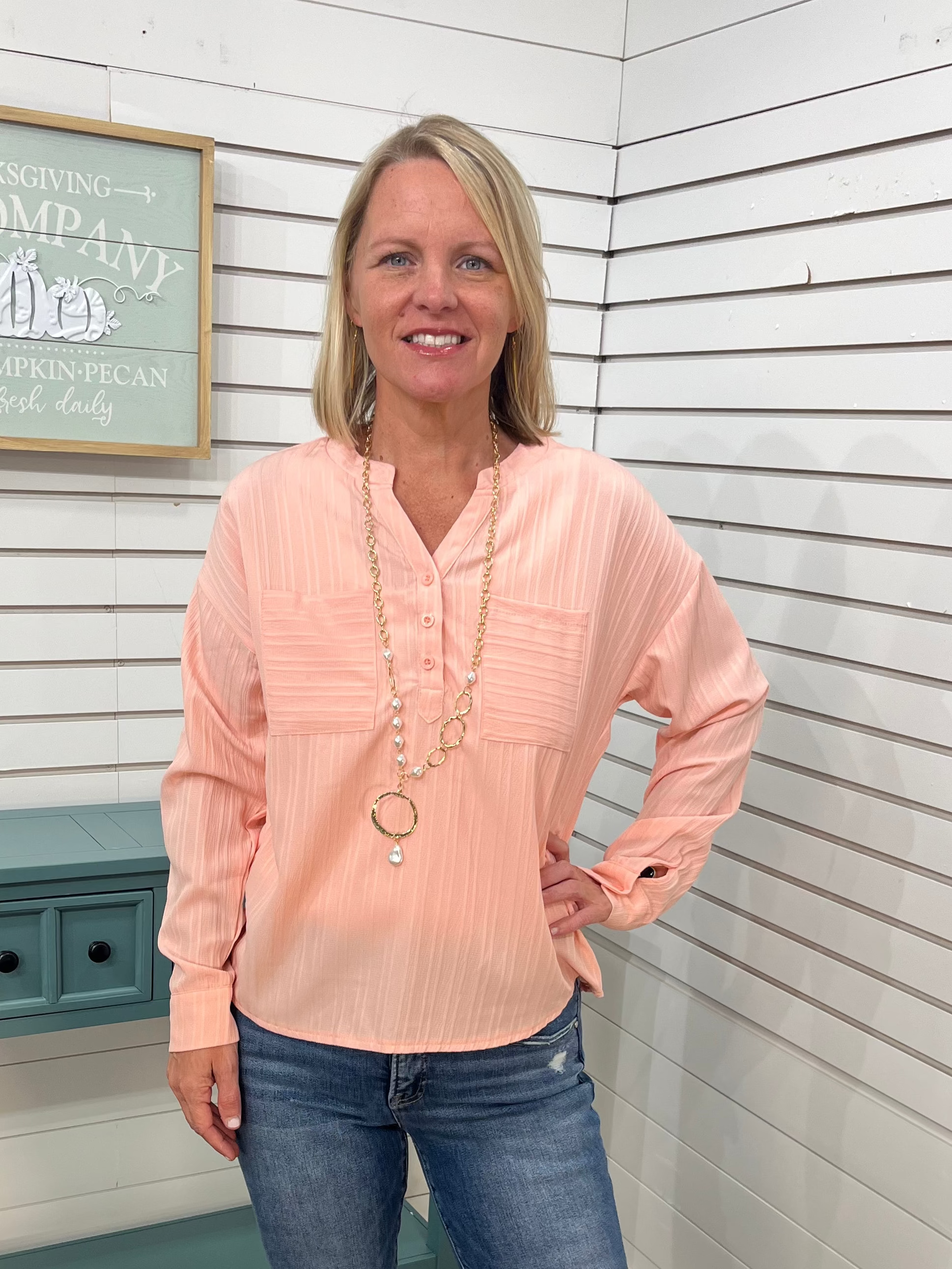 Add a splash of fun to your wardrobe with this pink split v-neck blouse. Featuring charming buttons and handy pockets, it effortlessly blends casual ease with dressy flair. Its soft fabric feels like a gentle hug, while the comfortable fit keeps you ready for anything—whether it’s a day out or a night on the town.