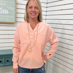 Pink Split V-Neck Blouse