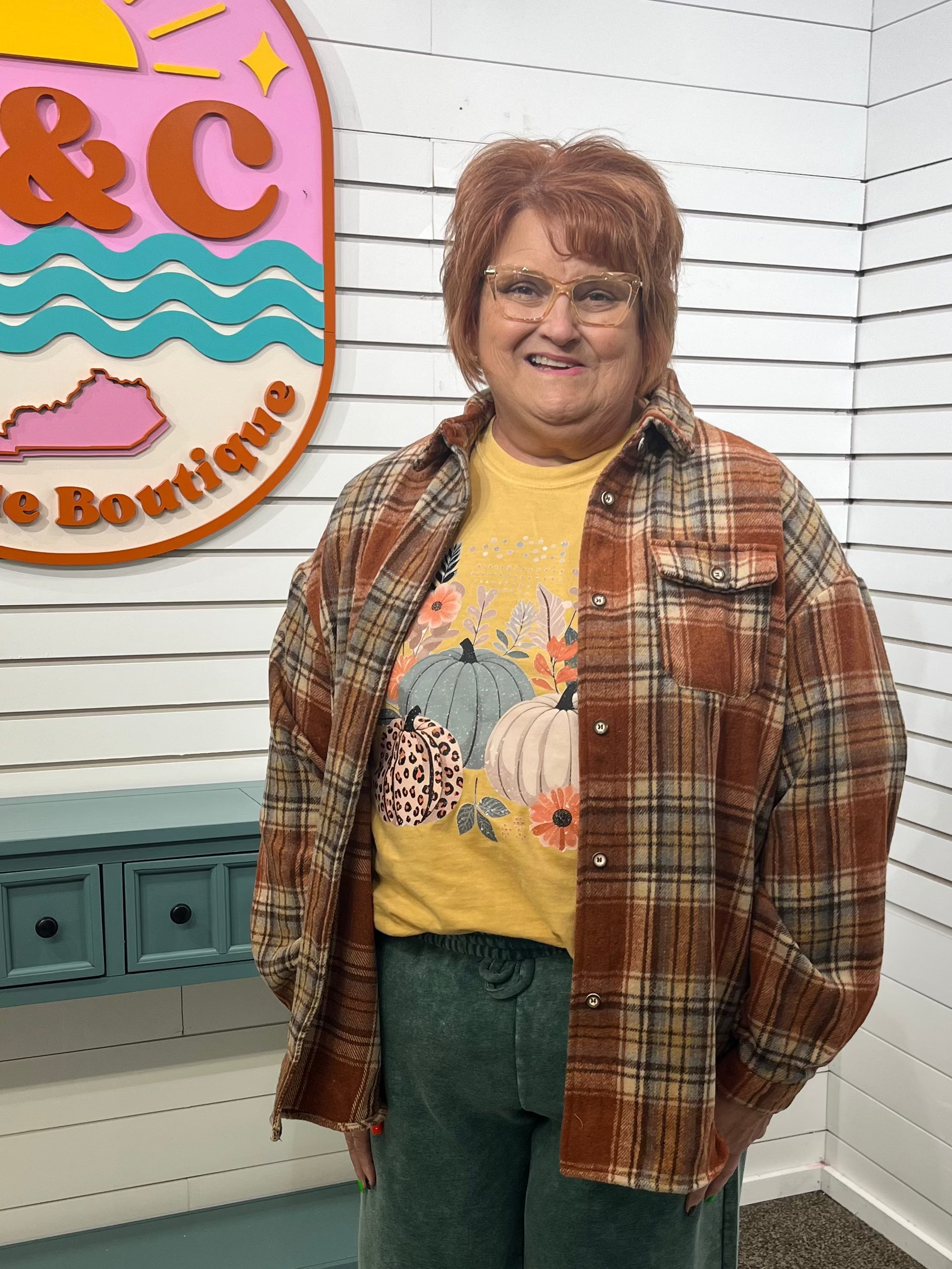 Step into style with this playful brown plaid button-up shirt designed to bring both comfort and charm to your wardrobe. Featuring a classic collar and handy flap pockets, it adds a touch of flair while keeping essentials close. Available in plus sizes, it’s perfect for anyone looking to embrace a cozy yet confident look with a timeless plaid pattern.