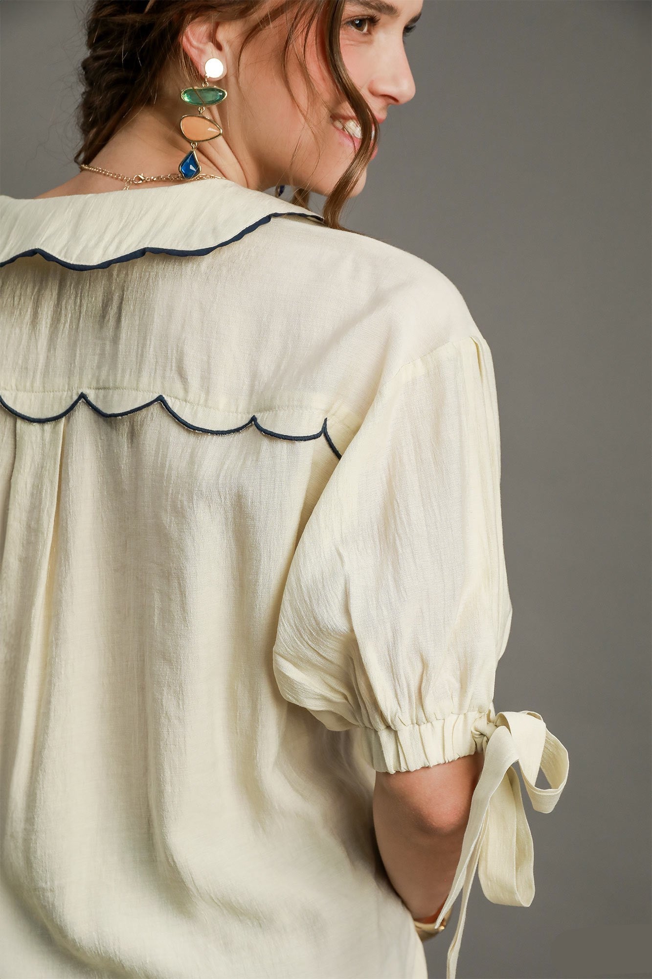 Scallop Collar Button Down Blouse