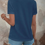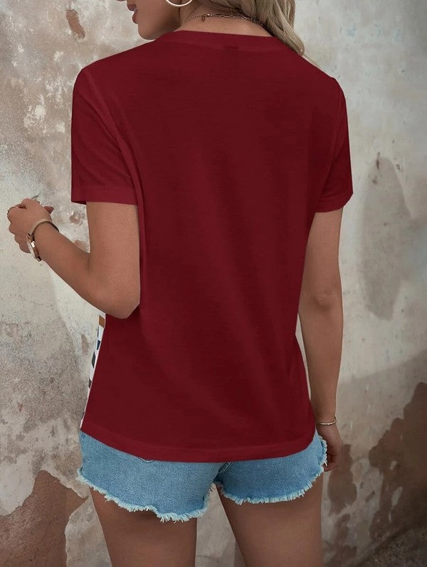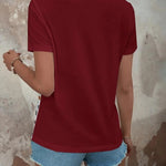 Brighten your warm-weather wardrobe with this playful summer striped short sleeve top. featuring buttons on the shoulders and vibrant stripes, it comes in your choice of peacock blue or rich wine. perfect for sunny days, its breezy design keeps you cool while adding a splash of color to any outfit.