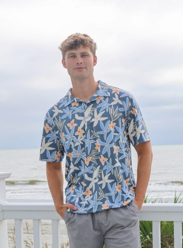 Elevate your style with the simply southern men's polo. made with comfort in mind, this polo features tropical patterns that are perfect for nights out in the village. experience the perfect blend of fashion and functionality with this must-have addition to any wardrobe.
