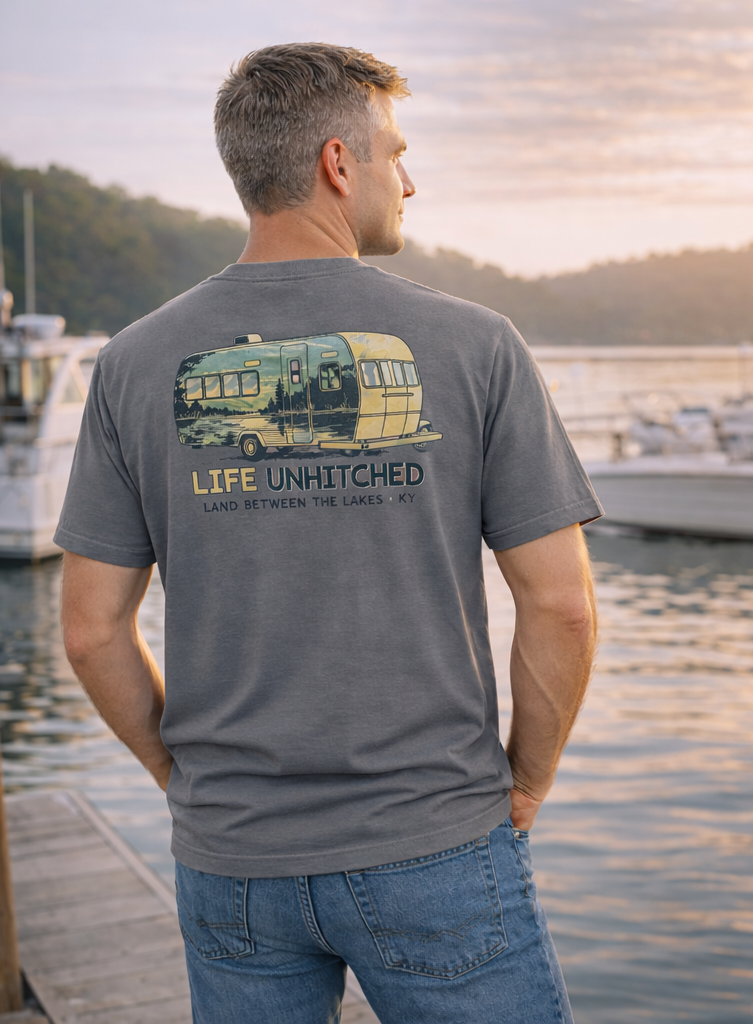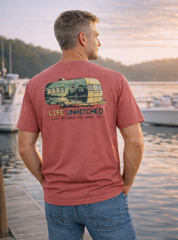 Hit the open road and explore with our Life Unhitched Camper Tee! Featuring a vintage camper design, this tee is perfect for those who love to travel and embrace the freedom of the open road. Made for adventurers and wanderers, this tee is a must-have for your next trip to Land Between the Lakes.