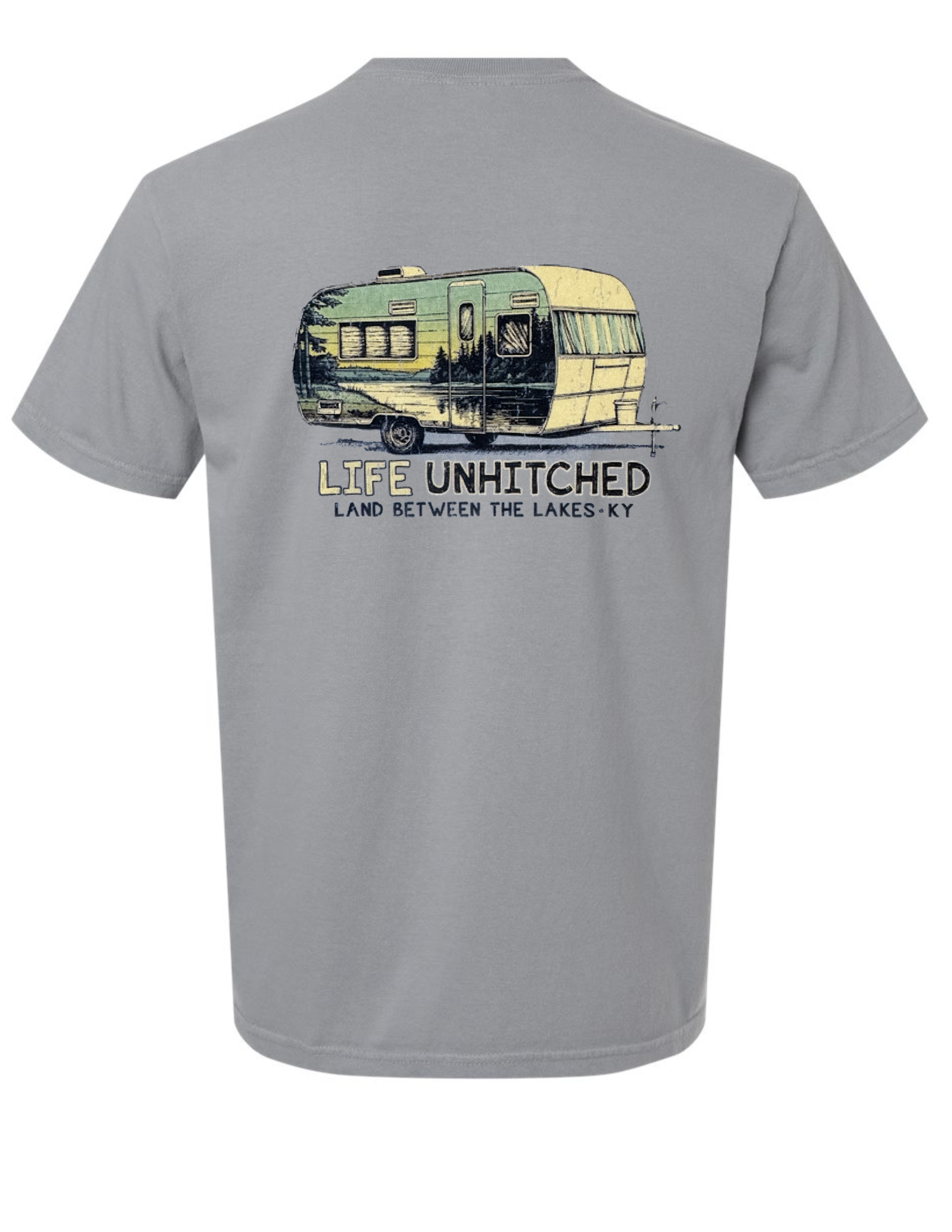 Hit the open road and explore with our Life Unhitched Camper Tee! Featuring a vintage camper design, this tee is perfect for those who love to travel and embrace the freedom of the open road. Made for adventurers and wanderers, this tee is a must-have for your next trip to Land Between the Lakes.
