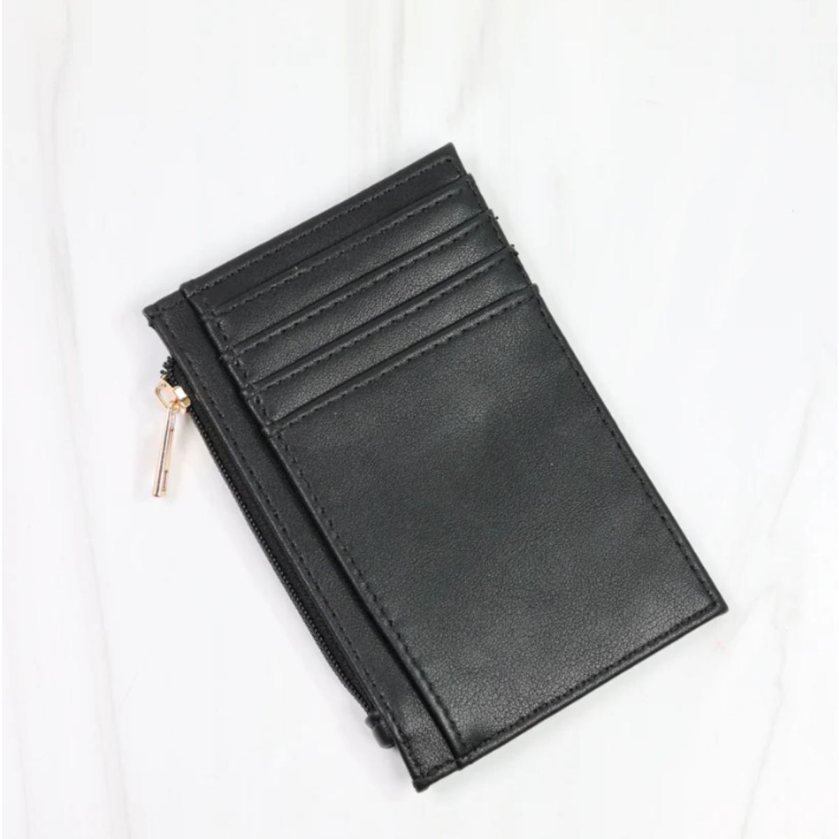 The Molly Zip Card Holder offers a refined blend of style and practicality. Equipped with card slots on both the front and back and a secure central zip pocket, it keeps your essentials elegantly organized. Its sleek design and sophisticated gold tone make it an ideal choice for those who appreciate understated luxury and functional convenience, measuring a compact 3.25" by 4.75".