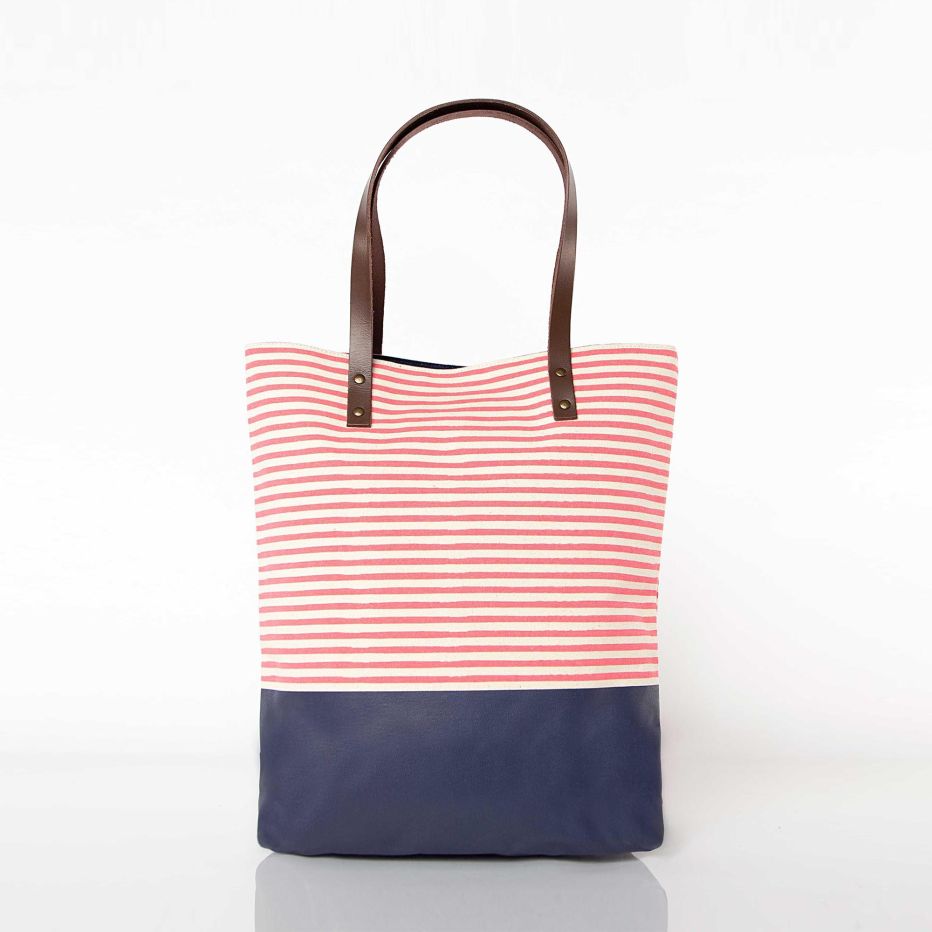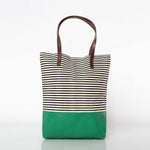 Meet your new favorite beach buddy: the Seaport Stripe Dipped Canvas Tote. Crafted from sturdy canvas with rich leather straps, it’s ready to carry your essentials—and your boat name or monogram with pride. Whether you’re sailing, shopping, or just soaking up the sun, this tote adds a splash of seaside charm and personality to every outing.