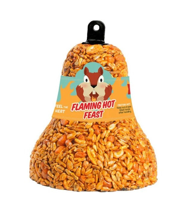 Made just for birds! This unique mix features sunflower hearts, peanuts, golden safflower, and mealworms—with an extra spicy kick! Warning: it contains hot pepper, a powerful irritant for eyes, nose, and skin. Be sure to wash your hands well after handling and keep it away from kids.