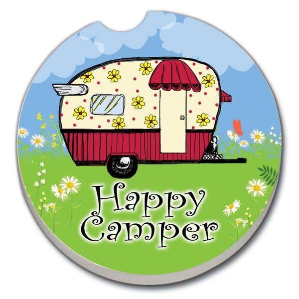 Happy Camper Absorbent Stone Car Coaster 1 Pack