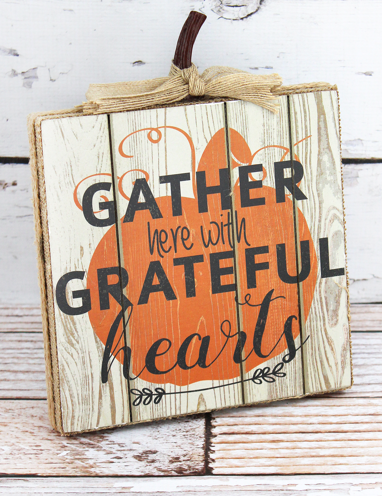 Grateful Heart Burlap Trimmed Wood Sign