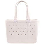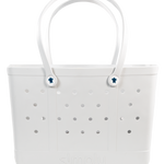Carry your daily must-haves in style with the washable Simply Southern large waterproof tote! Featuring detachable handles, charm-friendly holes, and a sturdy grip bottom that prevents tipping, this tote is ready for any adventure. Plus, the removable inner zippered pouch keeps your essentials like phone, wallet, and chapstick right at your fingertips. Get ready to make this your favorite everyday companion!
