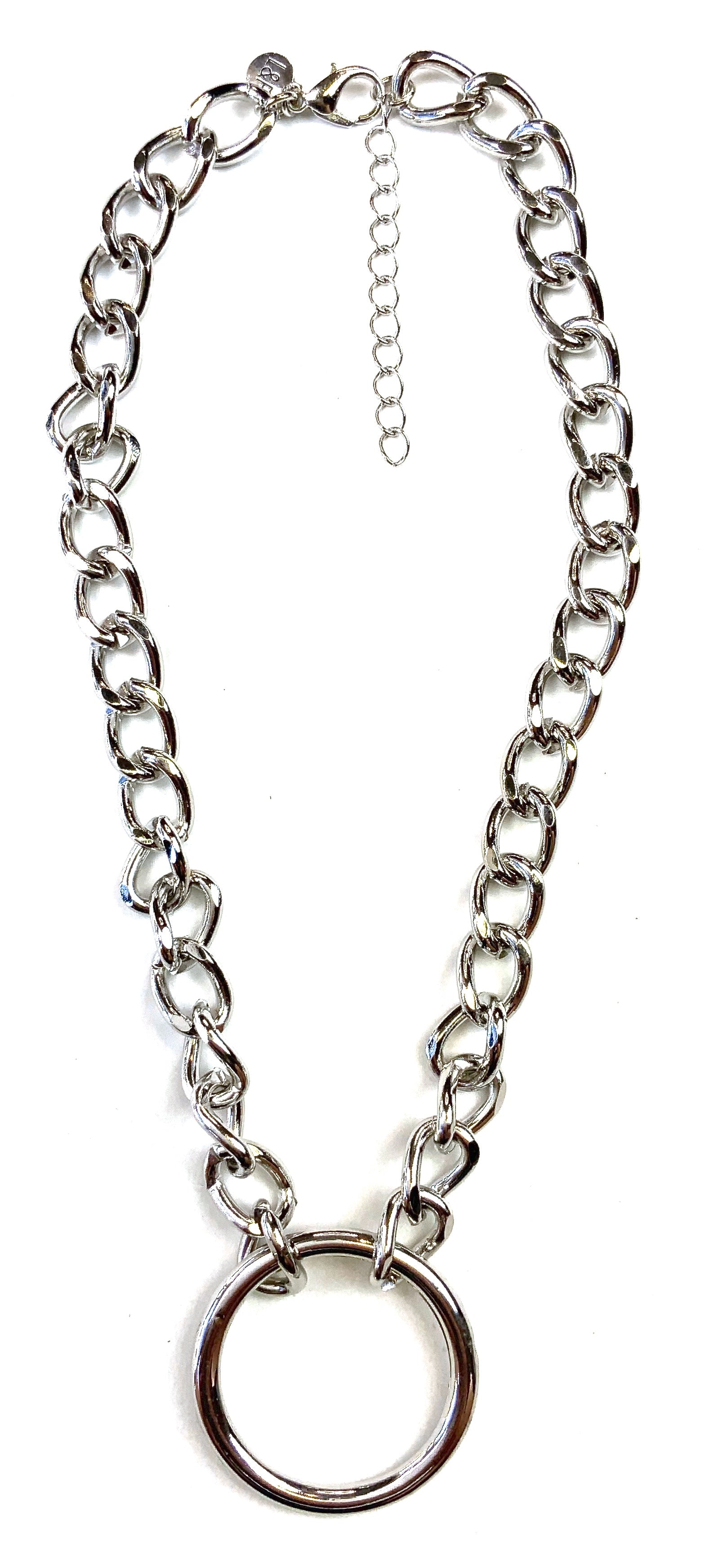 Elevate your accessory collection with this sophisticated curb chain featuring a bold, large circle ring. Its short length and classic curb link design offer a timeless appeal, making it an ideal statement piece for refined, contemporary style. Perfect for layering or wearing alone, this chain brings effortless elegance to any outfit.