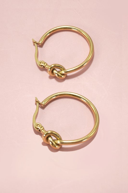 Add a twist of charm to your look with these Knot Design Hoop Earrings! Made from 18k stainless steel, they’re waterproof and won’t tarnish—perfect for all your adventures. The intricate knot design stands for unity and sophistication, making these hoops a playful yet elegant statement wherever you go.