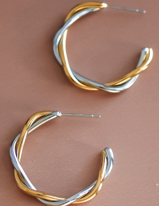 Two-Tone Twist Stainless Steel Hoops