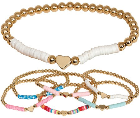 Stretch Golld Bead Bracelet With Heart