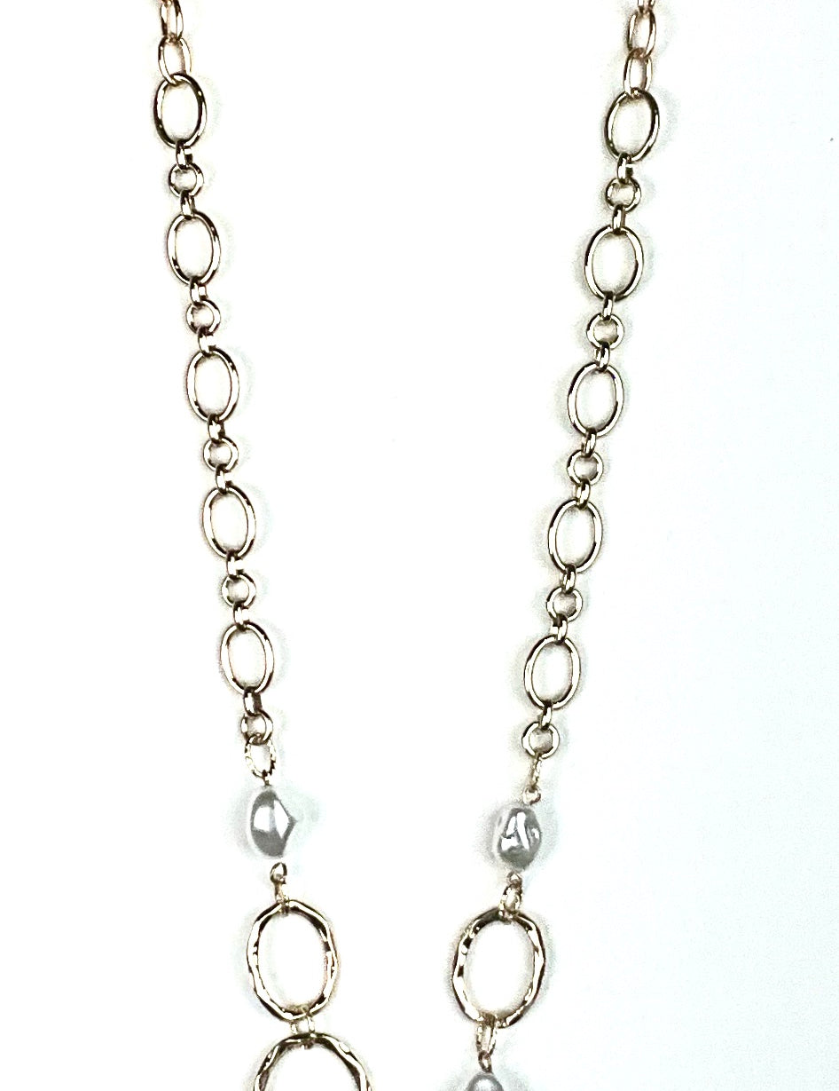 Long Oval Link Chain W/Pearls