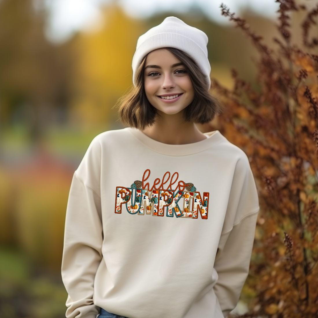 Hello Pumpkin Faux Embroidered Sweatshirt