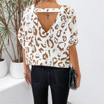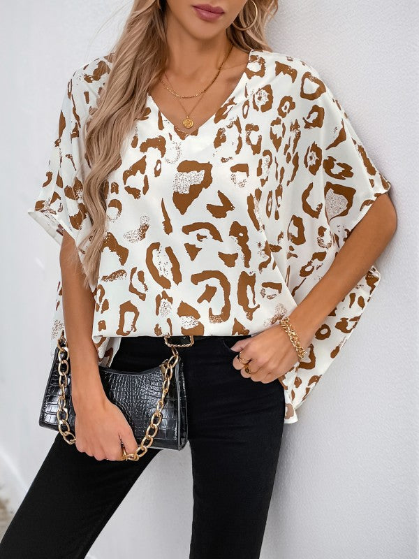 Embrace your wild side with this playful v-neck leopard top. its loose fit and batwing sleeves create a flowy silhouette that moves with you, perfect for adding a touch of fun and flair to any outfit. whether you're dressing up or keeping it casual, this top brings effortless style and comfort.