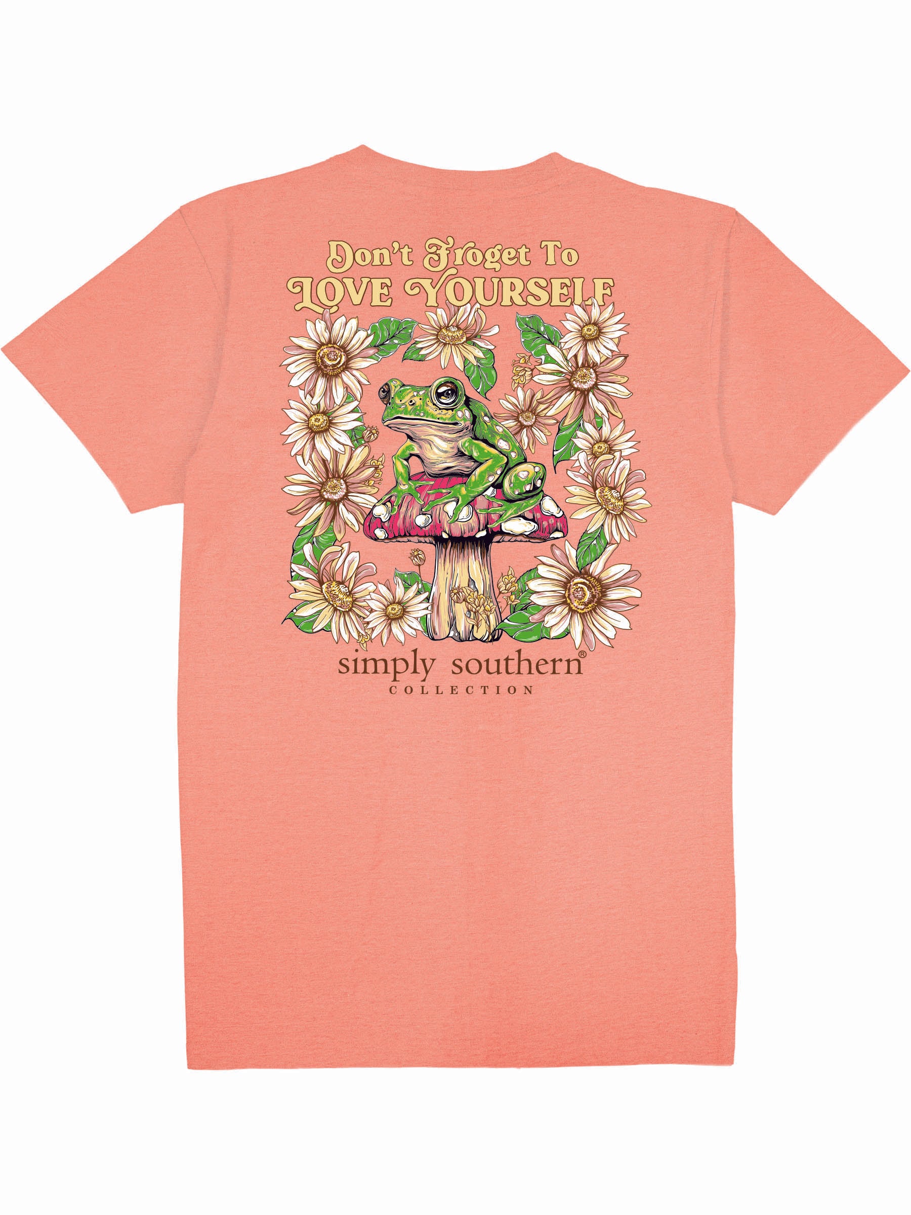 Never forget to love yourself with Simply Southern's playful reminder! Featuring a frog on a mushroom surrounded by flowers, this tee is a whimsical way to spread self-love. Don't miss out on the fun - grab one today!