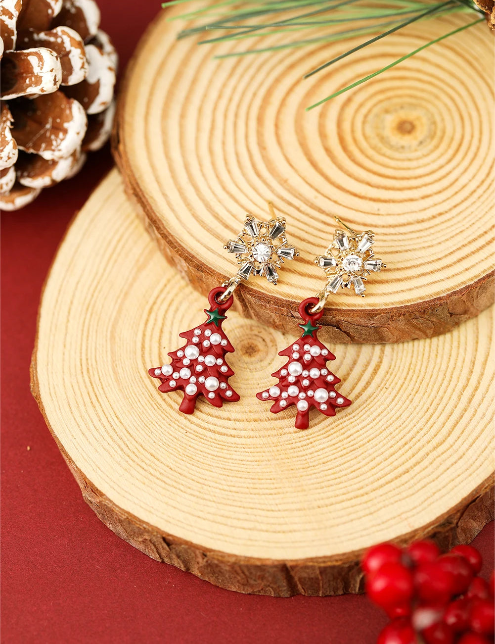 Fiery Red & Pearl Christmas Earrings