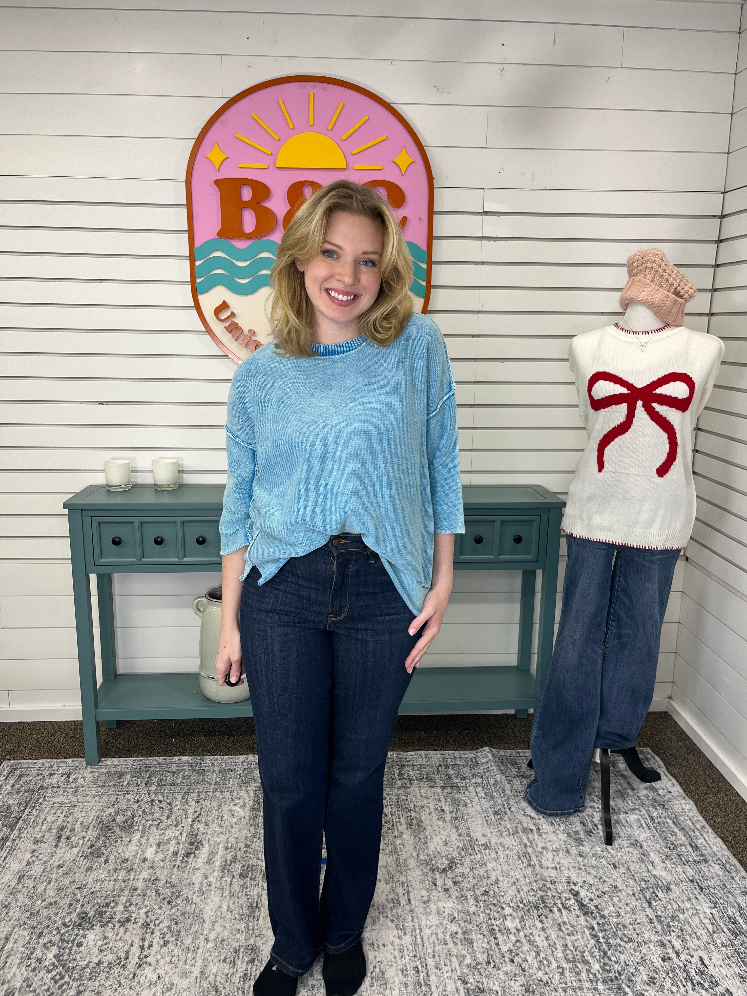 Boxy Sweater with 3/4 Sleeves