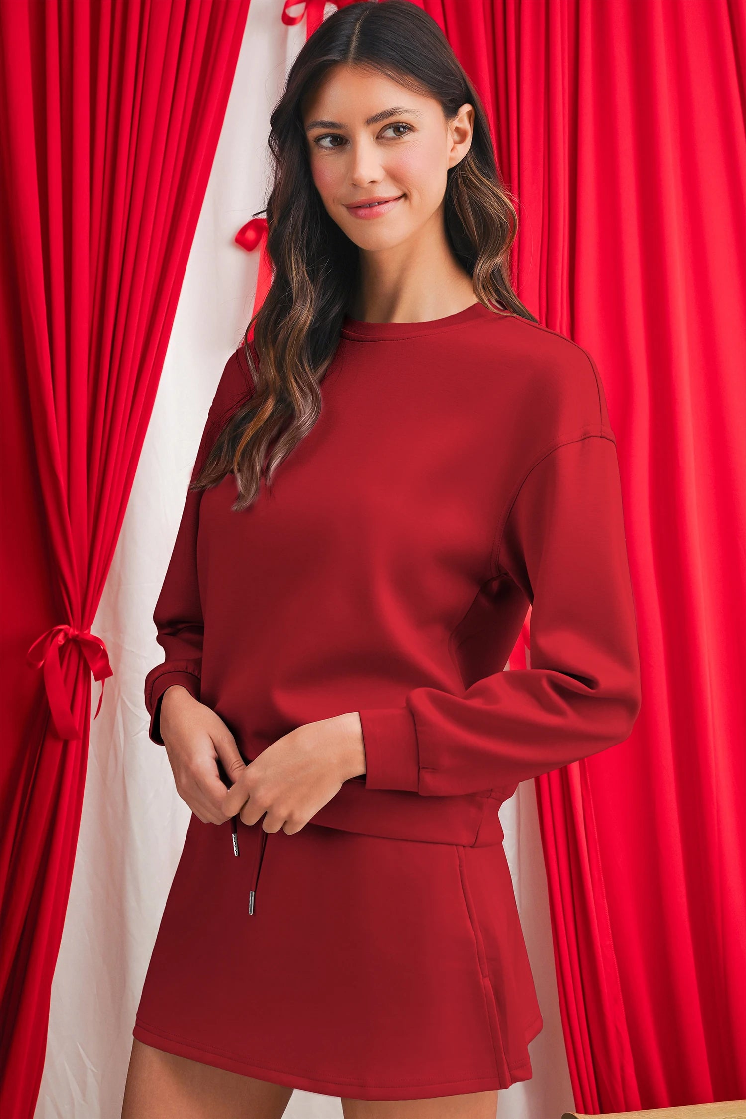 Effortless style meets comfort in this laid-back two-piece set. The loose comfortable drop shoulder pullover drapes beautifully for that relaxed vibe, while the lined mini skirt features a practical drawstring waist and hidden pocket—because pockets are always a win. Mix, match, or wear together for an instantly put-together look that feels anything but trying too hard.